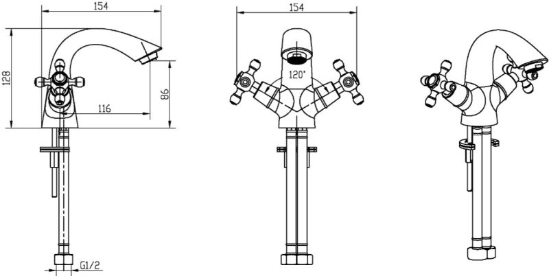 • Высота смесителя: