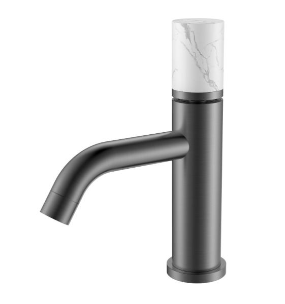 Смеситель для раковины Boheme Stick 121-GM-MR-W оружейная сталь/белый мрамор