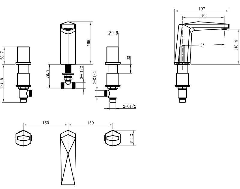 Смеситель для раковины Boheme Venturo 150-BCR-ICE чёрный/хром