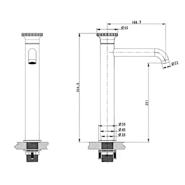 • Высота смесителя: