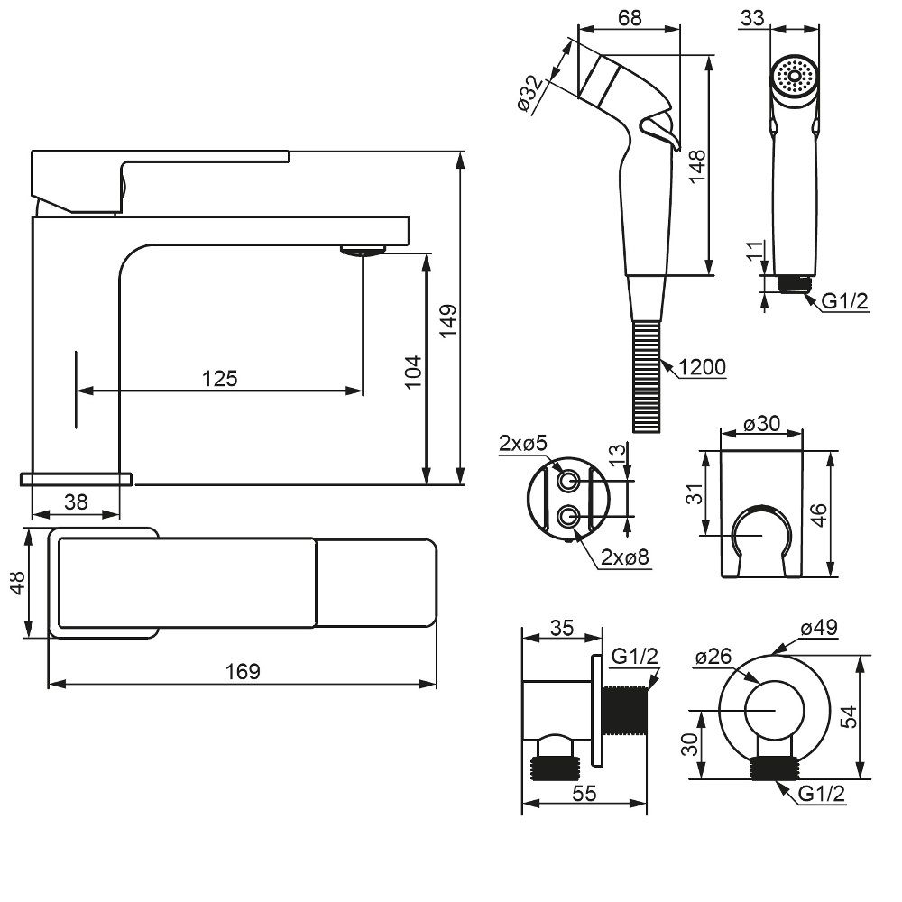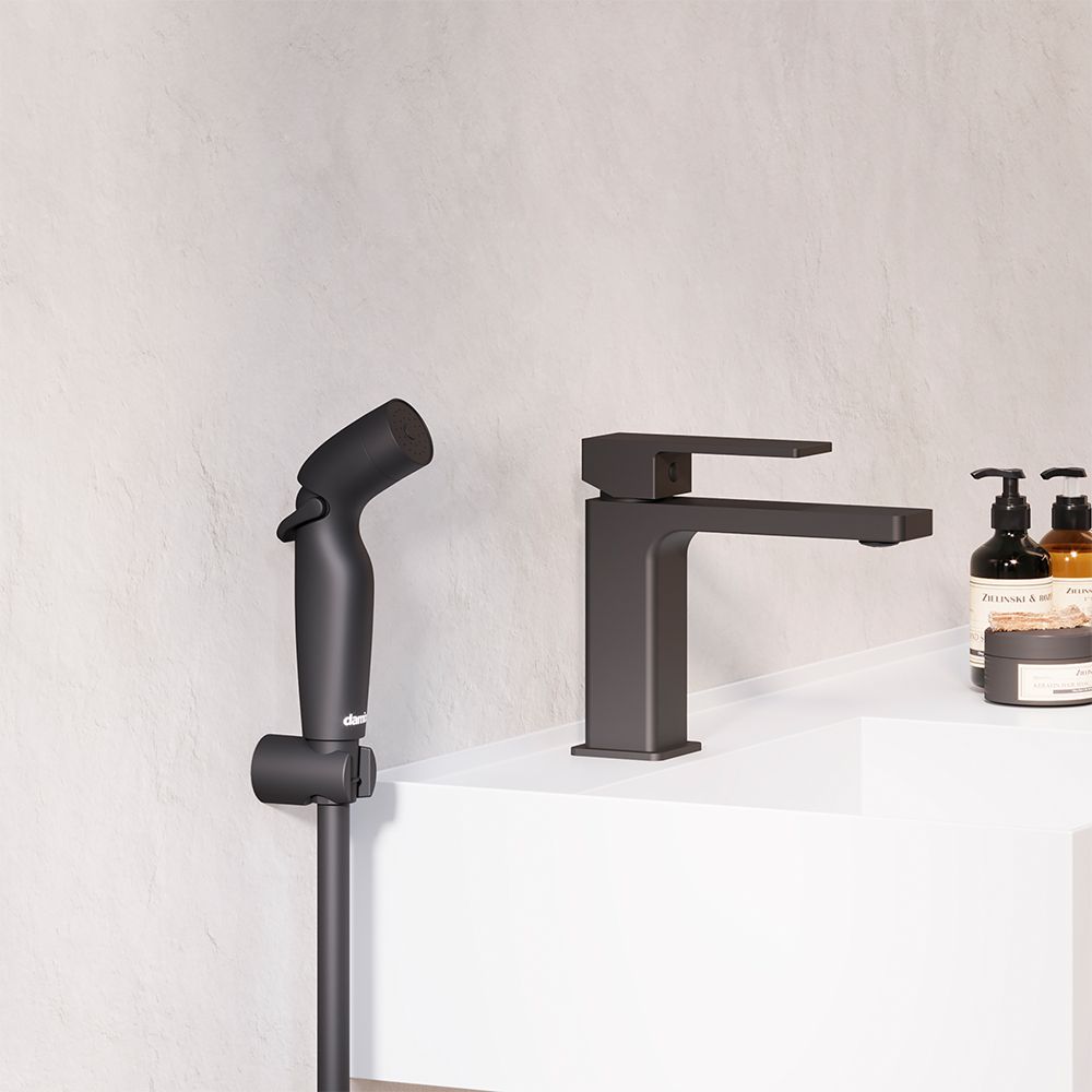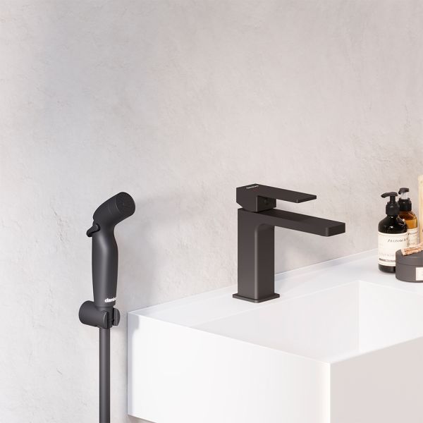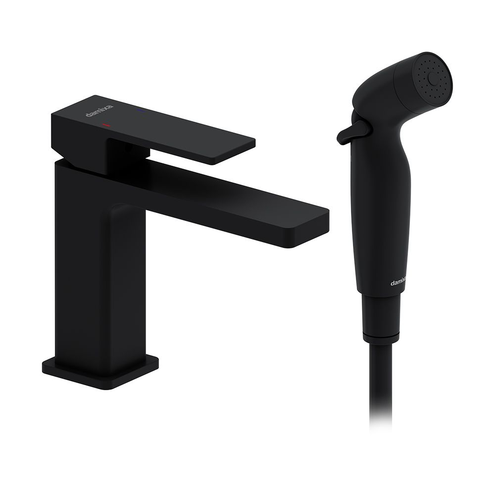 Смеситель для раковины Damixa Gala 530300300 черныйКорпус смесителя 1 шт.; Подводка для воды 2 шт.; Комплект крепления 1 компл.; Гигиенический душ 1 шт.; Шланг 1 шт.; Настенный держатель 1 шт.; Инструкция изделия 1 шт. Черный матовый, смеситель для раковины, строгие прямоугольные формы, ручной гиг душ с регулировкой напора