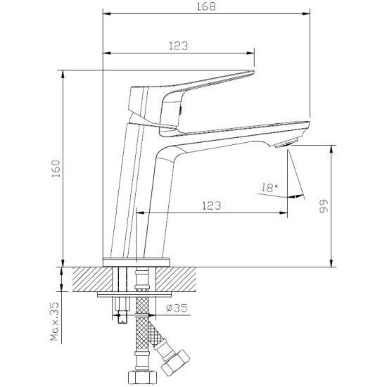 • Высота смесителя: