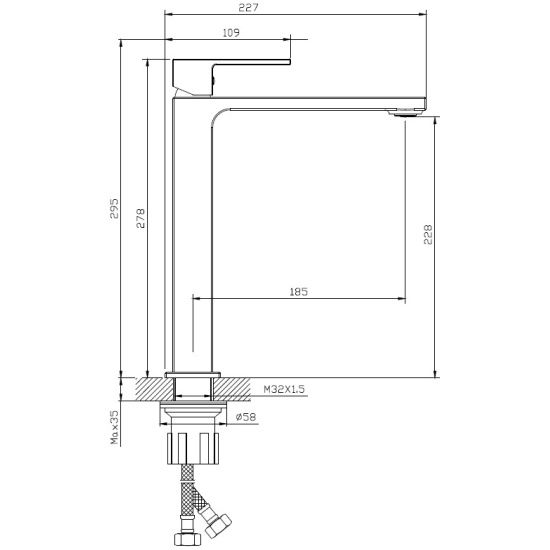 • Высота смесителя: