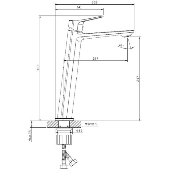 • Высота смесителя: