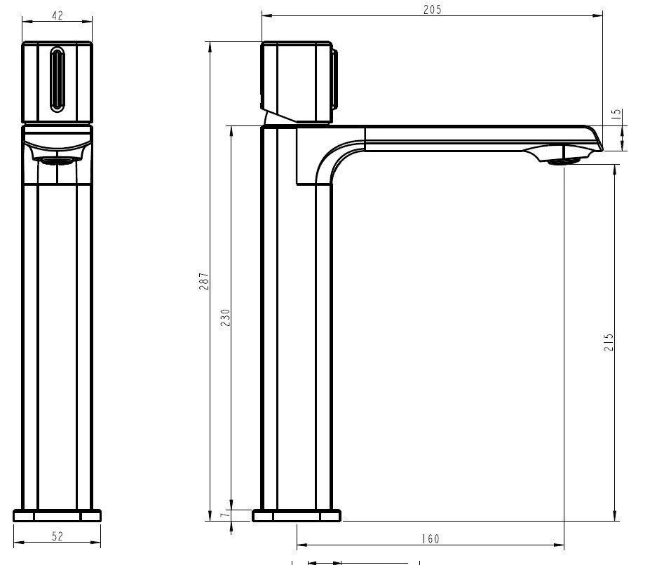 • Высота смесителя:
