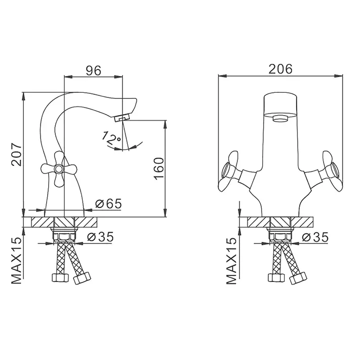 • Высота смесителя: