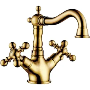 Смеситель для умывальника Gappo G1389-4 - выполнен в винтажном стиле. Материал изготовления - высокопрочная латунь, не подверженная коррозии. Керамические кран-буксы обеспечивают плавную регулировку температуры и мощности потока воды. Цвет - бронза.