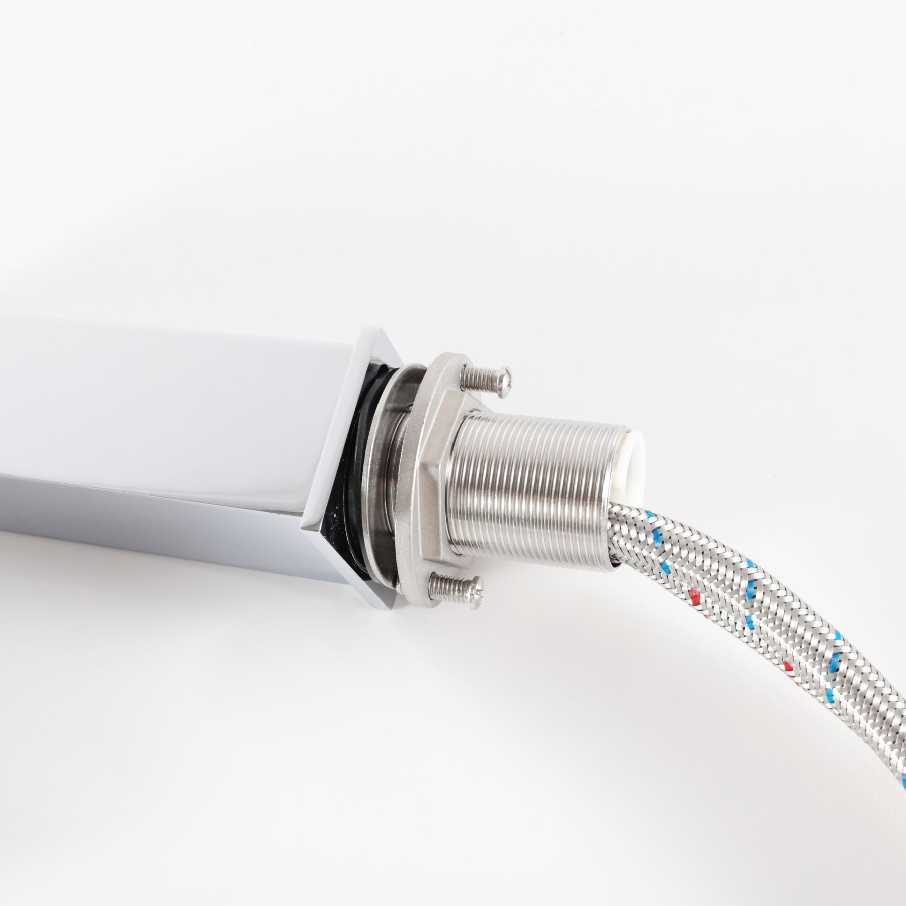 Cascada – Смелый дизайн и нестандартные формы сочетаются с испанским качеством и европейскими стандартами. Эти смесители превращают каждый поток воды в динамичное произведение искусства. Смеситель GID Anchel SS979-CH-K — это короткая версия, выполненная в стильном цвете хром, которая гармонично сочетает в себе элегантность и практичность. Он изготовлен из прочной нержавеющей стали (SUS 304), что гарантирует долговечность и устойчивость к коррозии. Дизайн модели вдохновлен величием водопада Anchel, известного своими плавными каскадами и кристально чистыми потоками. Смеситель передает эстетику природной силы воды, добавляя в интерьер ванной комнаты изысканность и уникальный стиль. Модель Anchel SS979-CH-K станет ярким акцентом в интерьере ванной комнаты, обеспечивая комфорт и надежность.