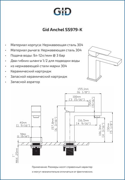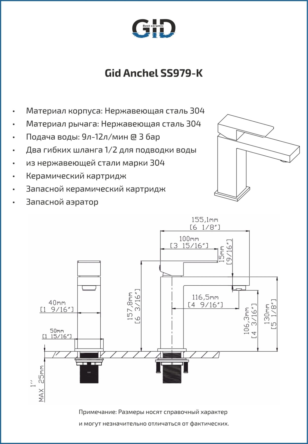 Смеситель для раковины Gid Anchel SS979-CH-K SS979CHK хром
