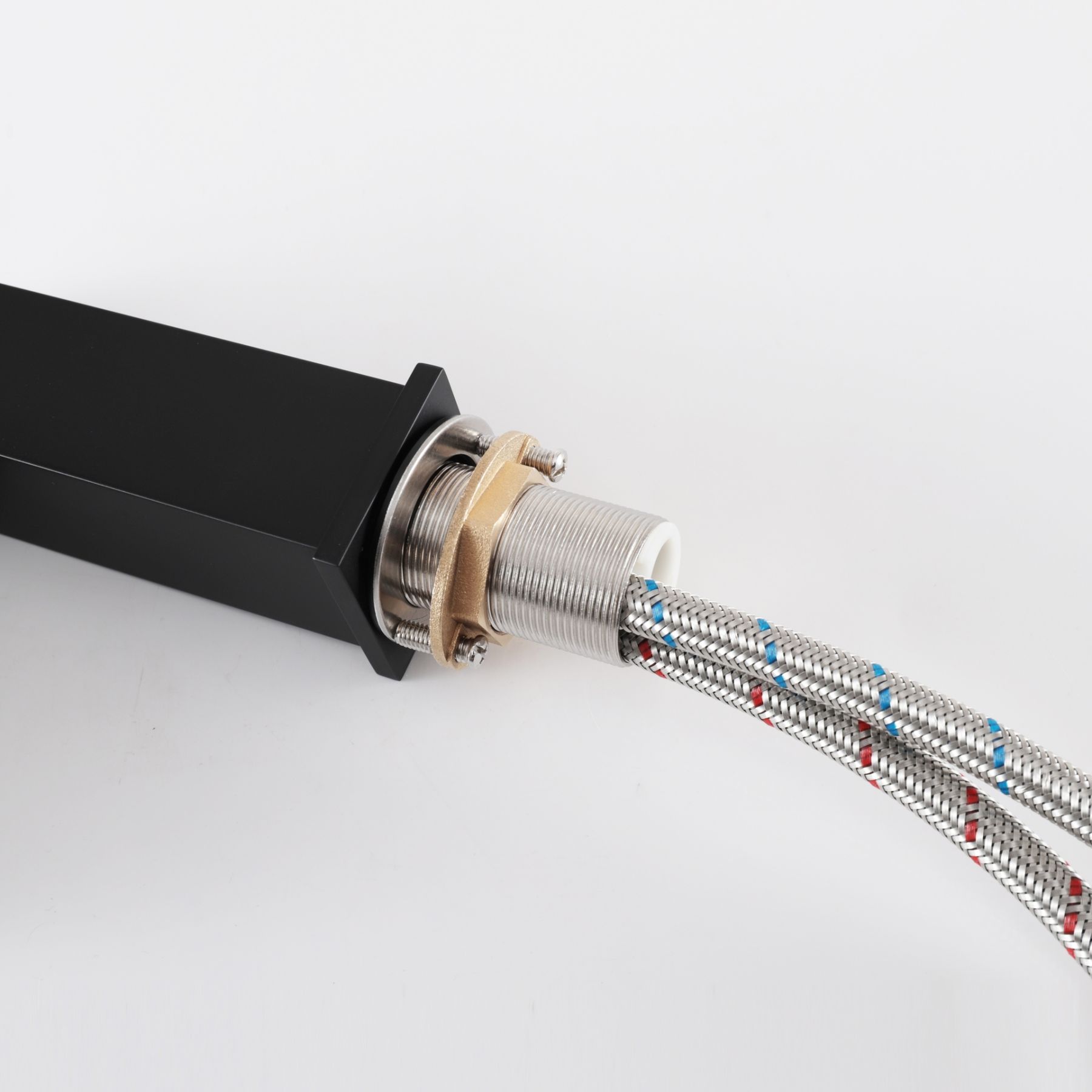 Cascada – Смелый дизайн и нестандартные формы сочетаются с испанским качеством и европейскими стандартами. Эти смесители превращают каждый поток воды в динамичное произведение искусства. GID Victoria L120-BM-K —короткая модель черного цвета, изготовленная из высококачественной латуни с высоким содержанием меди – 70%. Вдохновленный величием водопада Виктория, он олицетворяет мощь и красоту природы, которые привнесены в стильный и современный интерьер ванной комнаты. Долговечность и устойчивость к коррозии делают этот смеситель надежным выбором для длительного использования, а его изысканный дизайн добавляет элегантности вашему дому. Комплект: смеситель Victoria L120-BM-K; 2 шланга подачи воды, дополнительные аэратор и керамический картридж; шестигранный ключ.