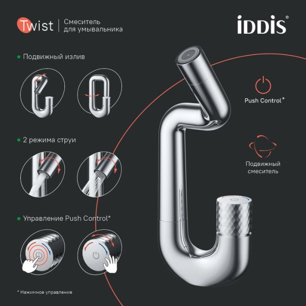 Смеситель для раковины IDDIS Twist Push Control TWISBBTi01 хром