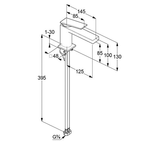 Однорычажный смеситель на умывальник Kludi Decus: монтаж на одно отверстие, литой рычаг, аэратор s-pointer Caché M 18,5 x 1, керамический картридж с ограничителем горячей воды, расход воды 5 л/мин при давлении 3 бара, гибкая подводка G 3/8 с сертификатом DVGW, система быстрого монтажа.