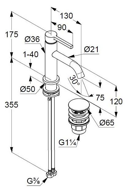 • однорычажный смеситель на умывальник 75 DN 15