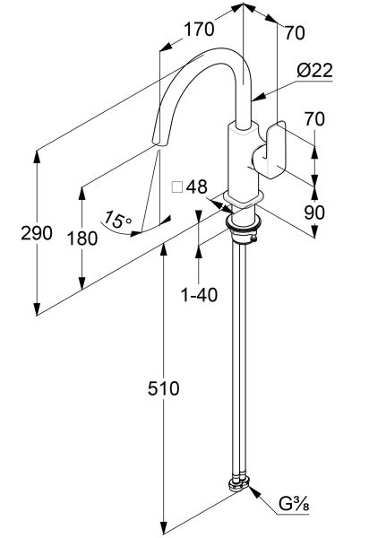 • Поворотный излив позволяет повернуть смеситель для удобства использования раковины