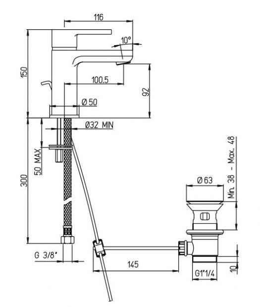 • Высота смесителя: