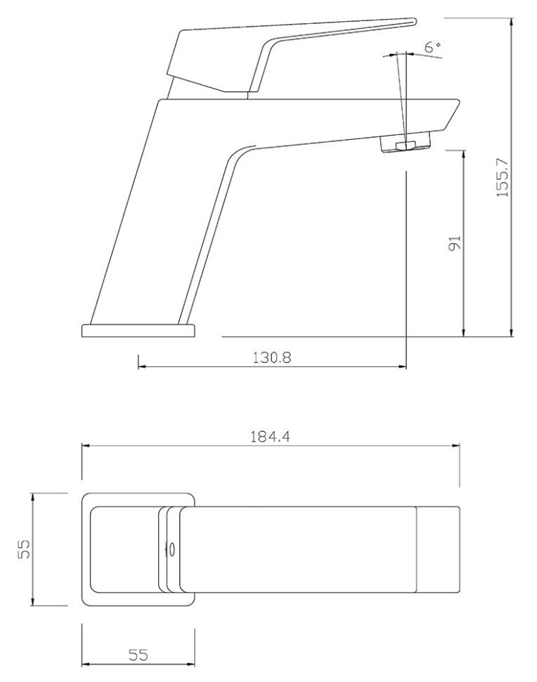 • Высота смесителя: