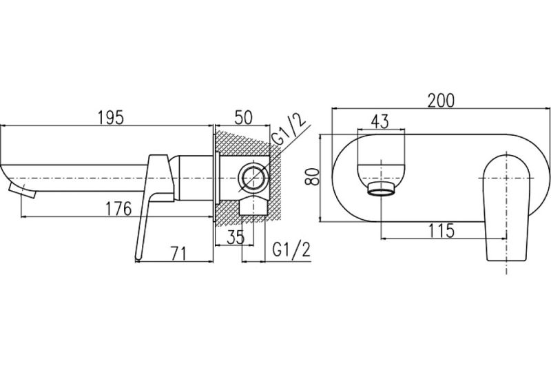 Смеситель для раковины Rav Slezak Colorado CO135CMATZ ЧерныйСмеситель для умывальника настенный, включая тело скрытого монтажа КОЛОРАДО, SLEZAK-RAVCмеситель латунный