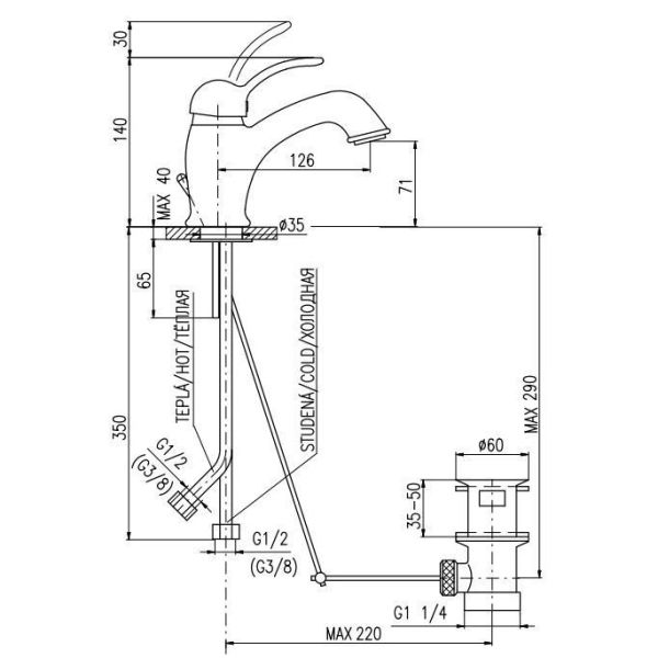 • Высота смесителя: