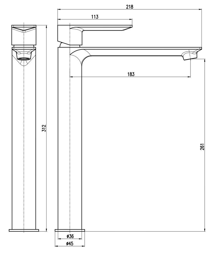 • Высота смесителя: