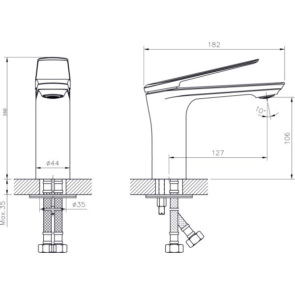 Смеситель для раковины RUSH арт. BE5535-11 с металлической ручкой из коллекции Bering изготовлен из высококачественной латуни и имеет рычажное управление. В смеситель установлен картридж D-35 с керамическими пластинами. Высота смесителя 160 мм. Излив литой, неповоротный, 127 мм. Высота излива до аэратора 106 мм. Аэратор изготовлен из пластика с нержавеющим корпусом, угол наклона аэратора- 10 гр. В комплекте гибкая подводка с латунными гайками 45 см - 2шт, универсальная присоединительная группа для установки на горизонтальную поверхность, фум-лента, индивидуальный пакет, паспорт, гарантийный талон.