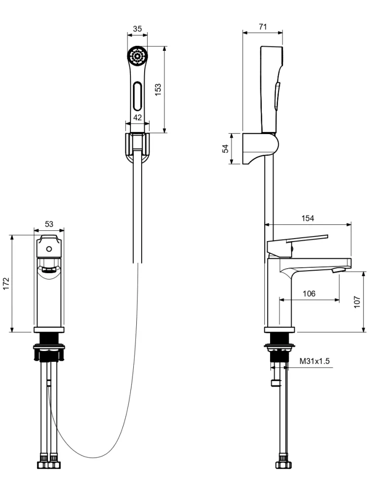 Смеситель для раковины с гигиеническим душем Aquatek Лугано AQ1712CR хромСмеситель из латуни