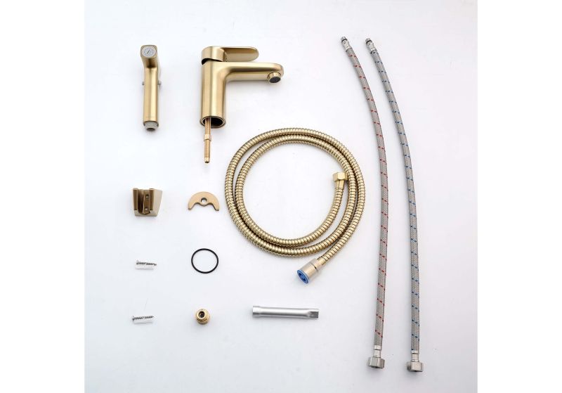 Смеситель для раковины с гигиеническим душем Aquatek Ника AQ1812BG золотоСмеситель