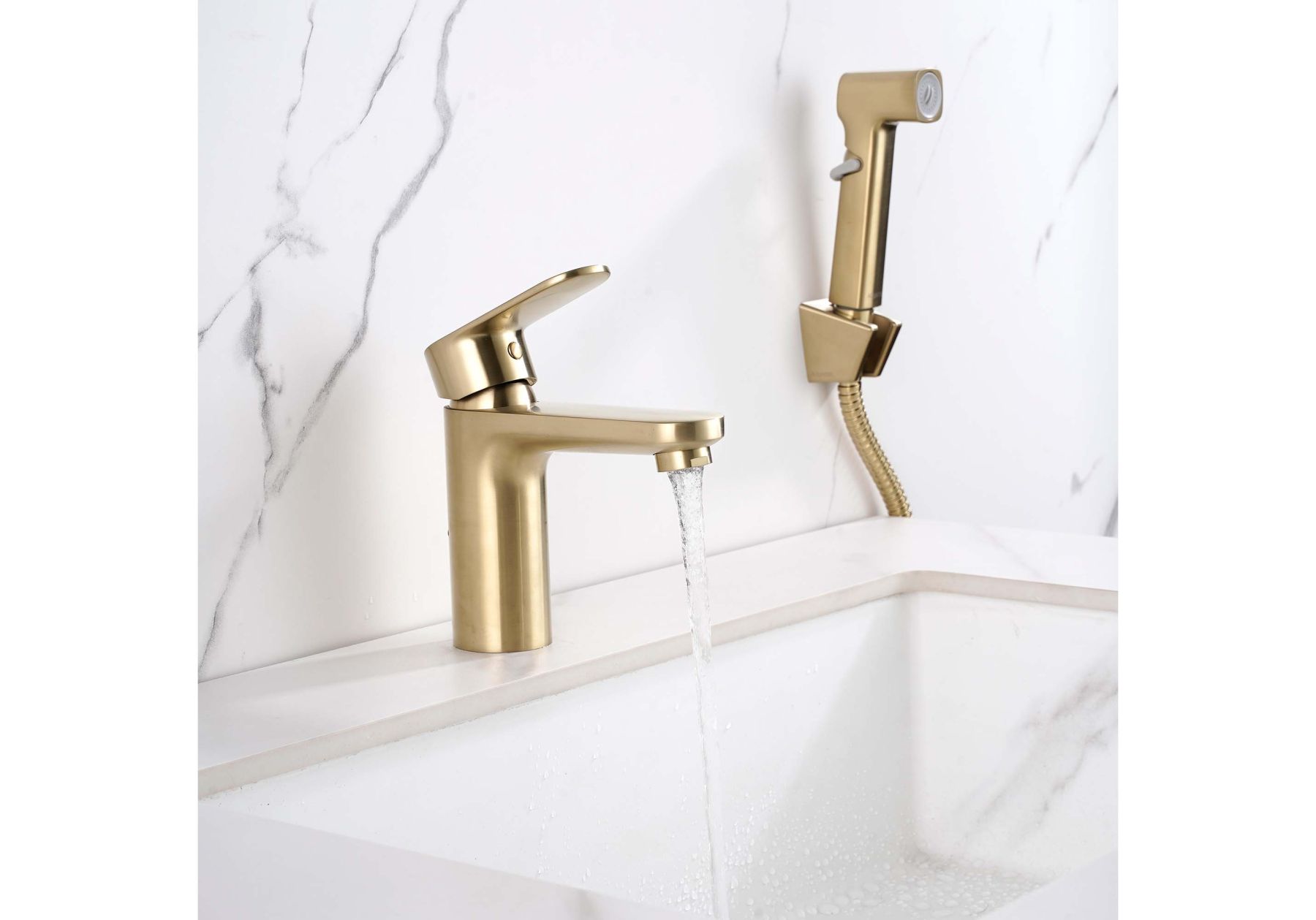 Смеситель для раковины с гигиеническим душем Aquatek Ника AQ1812BG золото