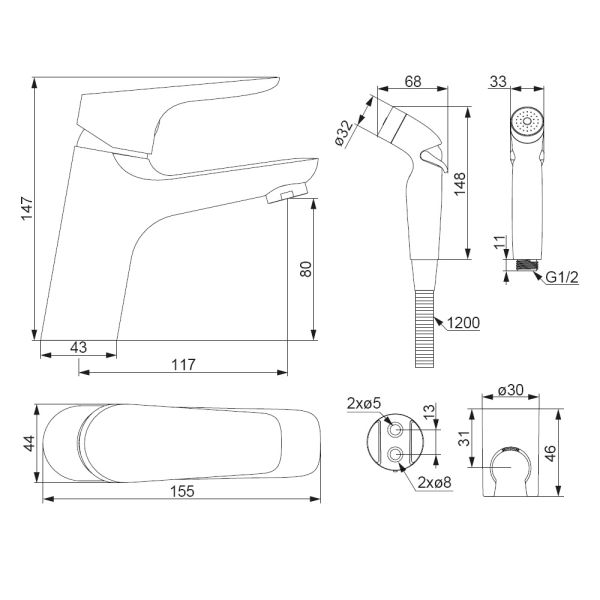 Смеситель для раковины с гигиеническим душем Damixa Jupiter 770300001 хром