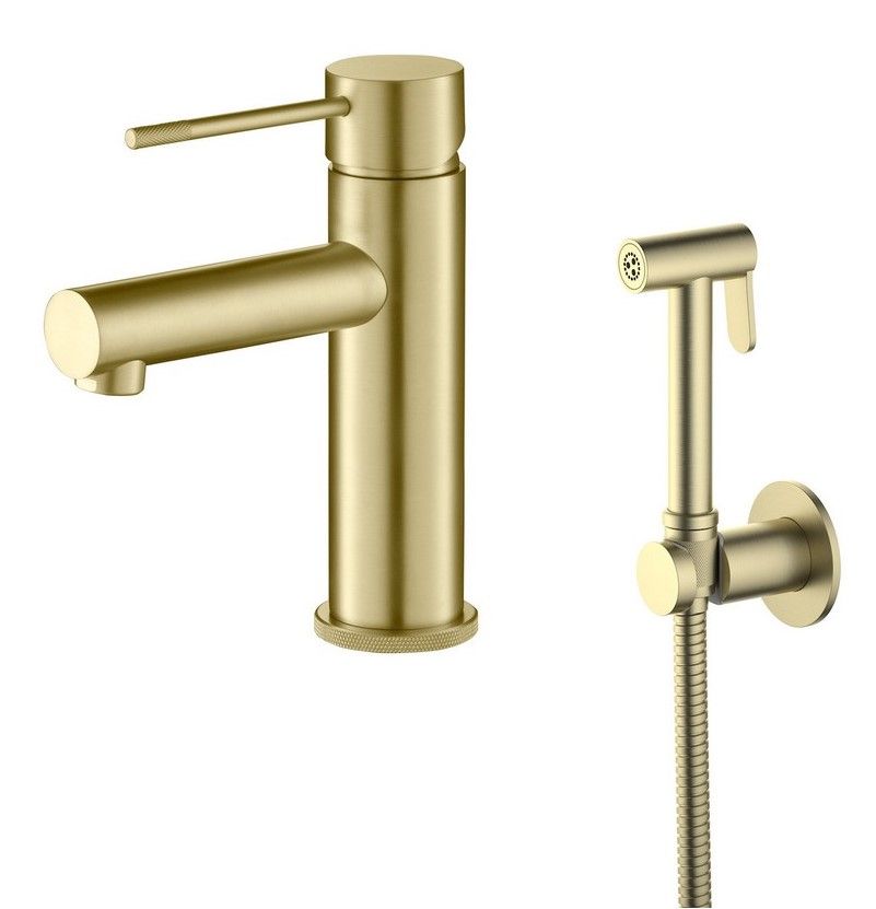 Смеситель для раковины с гигиеническим душем Timo Saona 2360/17G золото матовое купить
