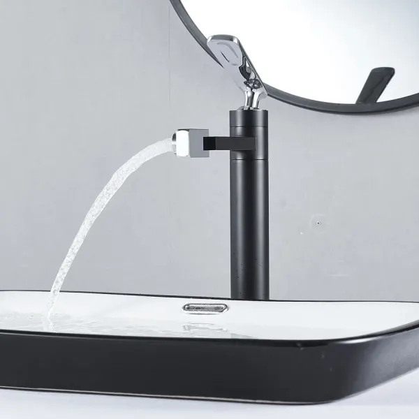 Смеситель для раковины Shevanik S6611H с поворотным носиком чёрный/хром