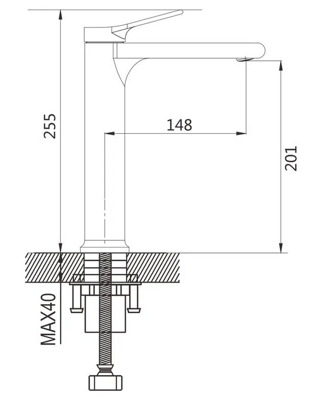• Высота смесителя: