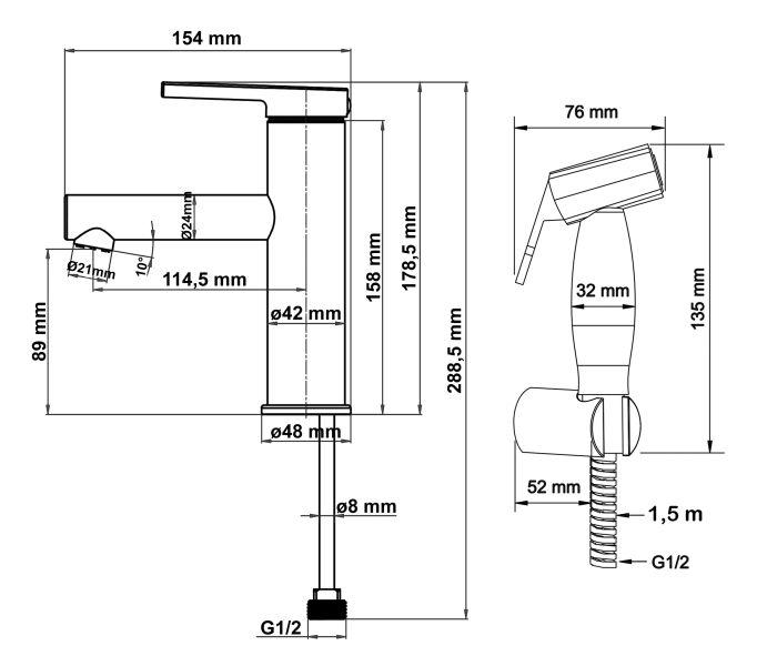 Смеситель для раковины c гигиенической лейкой Керамический картридж Sedal.Аэратор Neoperl.Гибкая подводка SoftPEX. Гигиенически стабильная латунь с высоким содержанием меди. Лейка прошла тест от протечек - 5 Bar на 24 часа. 2 режима, сопло из монополимера стойкого к обрастанию водным камнем, запорное седло из высококачественной латуни, кронштейн, шланг металл 1,5м.