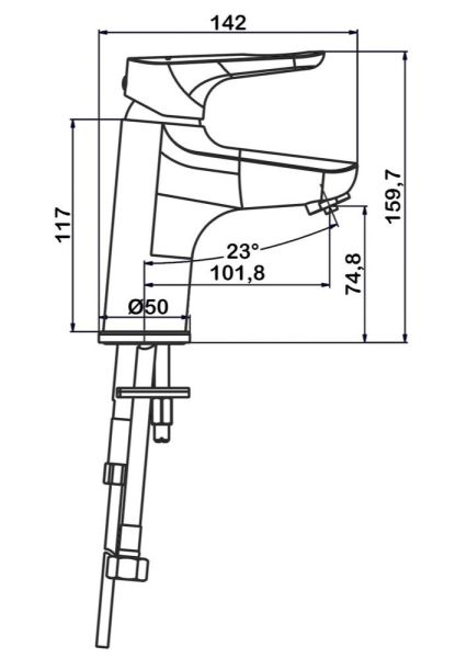 • Высота смесителя:
