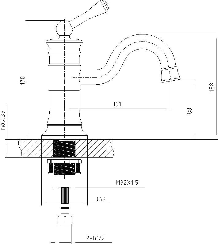 • Высота смесителя: