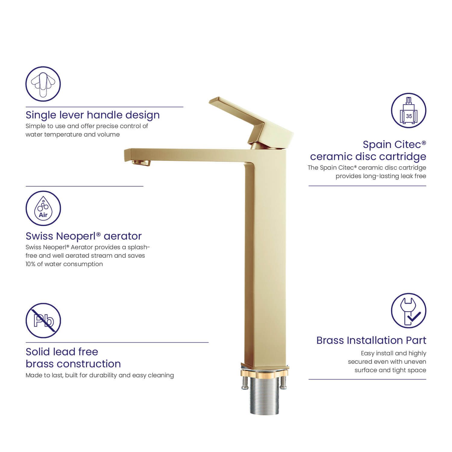 Смеситель для раковины Timo Selene 3011/17F золото матовое купить