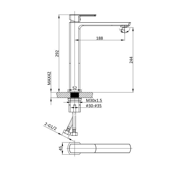 • Высота смесителя: