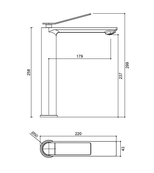 • Высота смесителя: