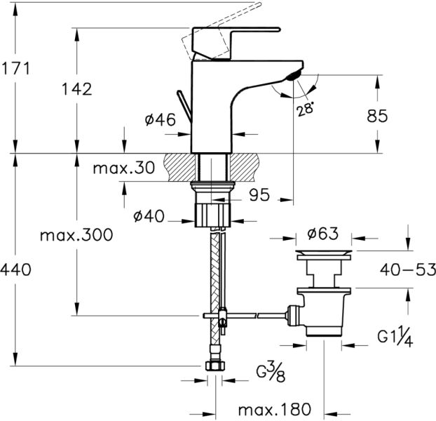 • Высота смесителя: