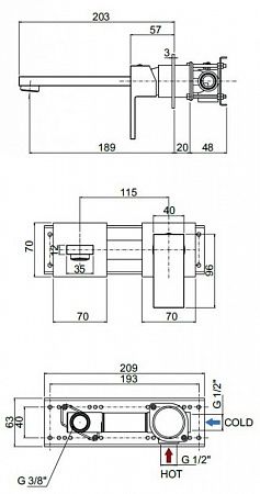Смеситель для раковины встраиваемый однорычажный, бронза Cezares UNIKA-BLI2-02 купить