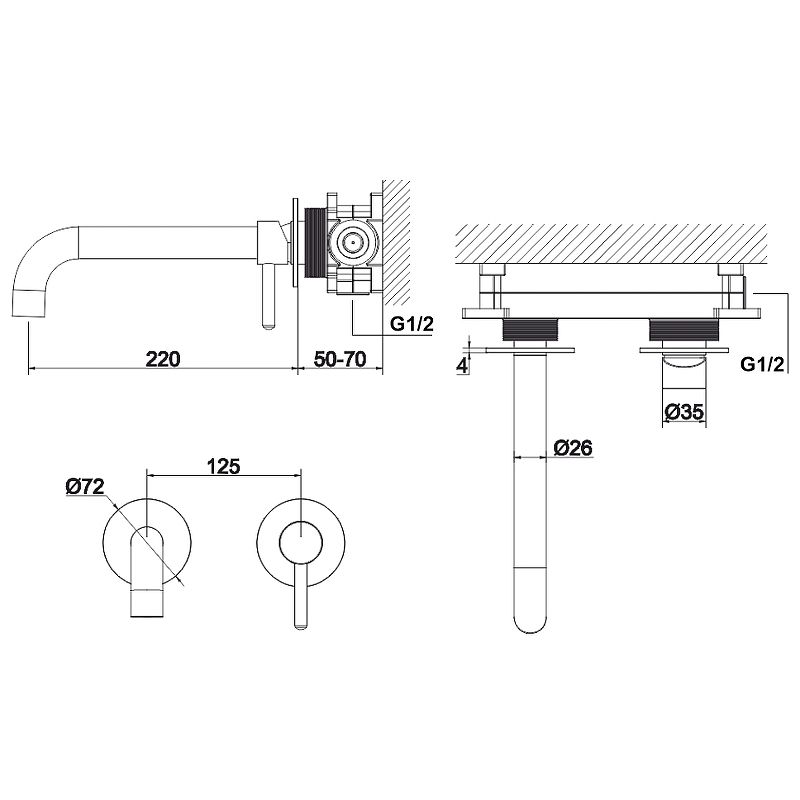 • размеры розетки: ø72 мм;