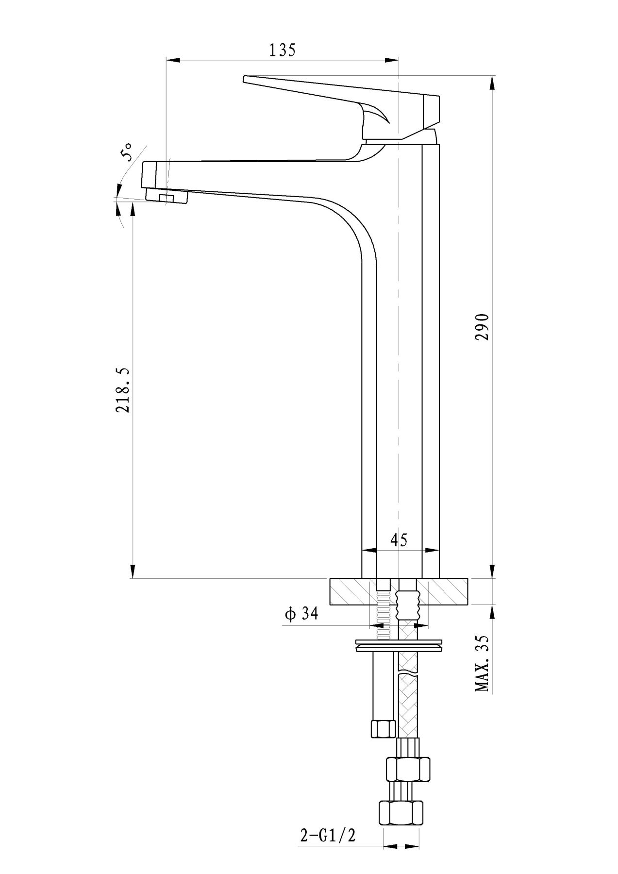 • Высота смесителя: