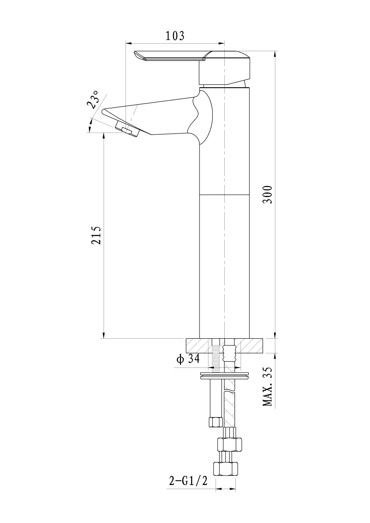 • Высота смесителя: