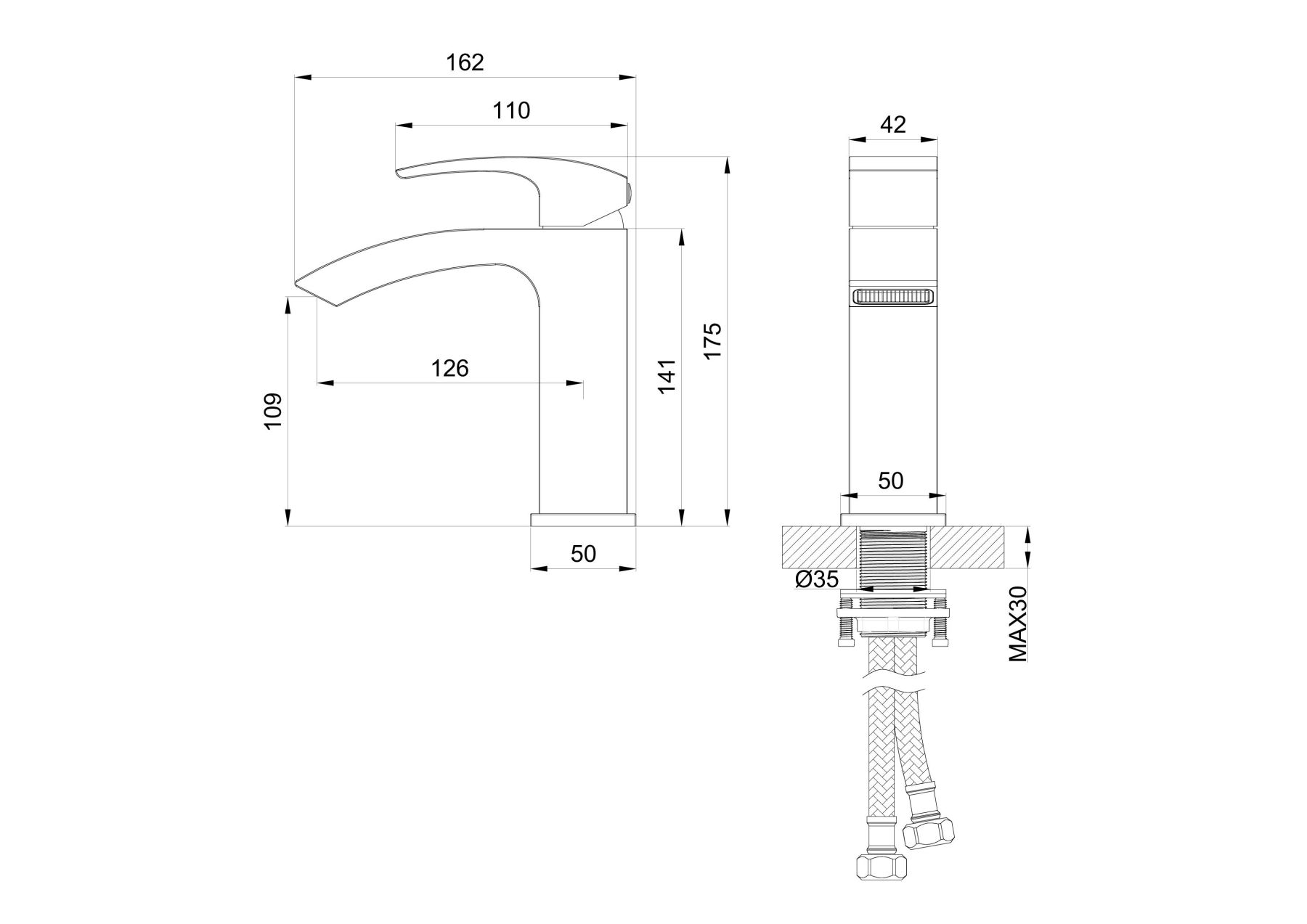 • Высота смесителя: