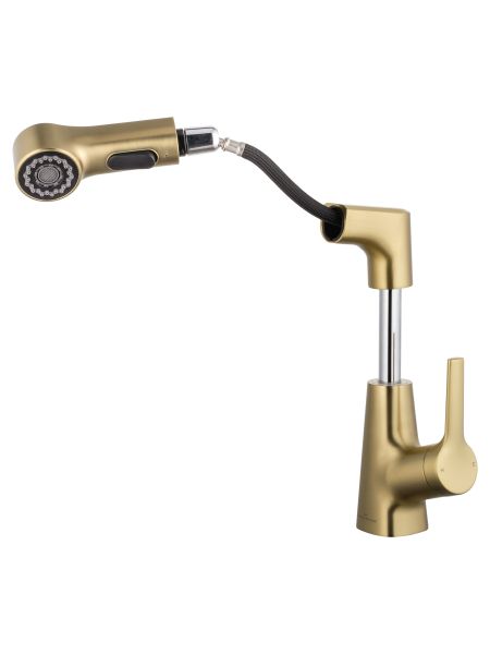 Смеситель для раковины с выдвижным изливом WONZON & WOGHAND, Брашированное золото (WW-121... Подробнее