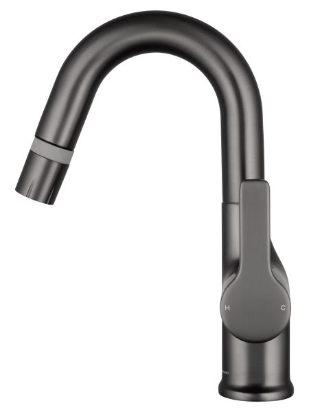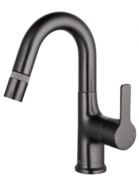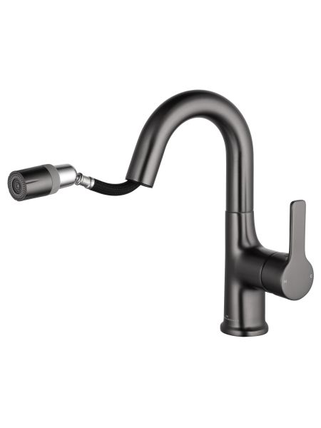 Смеситель для раковины Wonzon & Woghand WW-FE01L212-BGG с выдвижным изливом тёмный графит