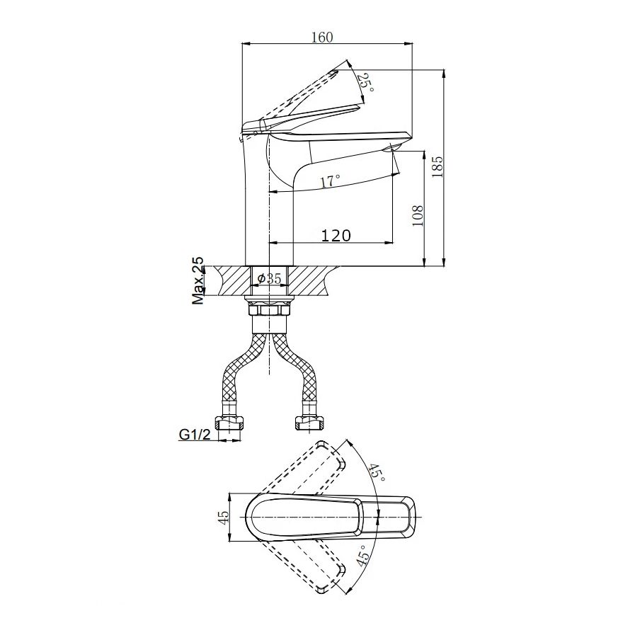 Смеситель для раковины RUSH арт. NE1735-12ant с металлической ручкой из коллекции Nevis изготовлен из высококачественной латуни и имеет рычажное управление. В смеситель установлен картридж D-35 с керамическими пластинами. Высота смесителя 185 мм. Излив литой неповоротный 116 мм. Высота излива до аэратора 108 мм. Аэратор изготовлен из пластика с нержавеющим корпусом, угол наклона - 17 гр. В комплекте универсальная присоединительная группа для установки на горизонтальную поверхность, гибкая подводка с латунными гайками 40 см - 2шт, фум-лента, индивидуальный пакет, паспорт, гарантийный талон.