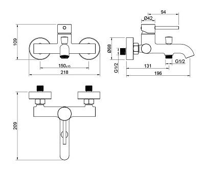 Смеситель для ванны Aquatek Европа AQ1340BGM шлифованный чёрный хром купить