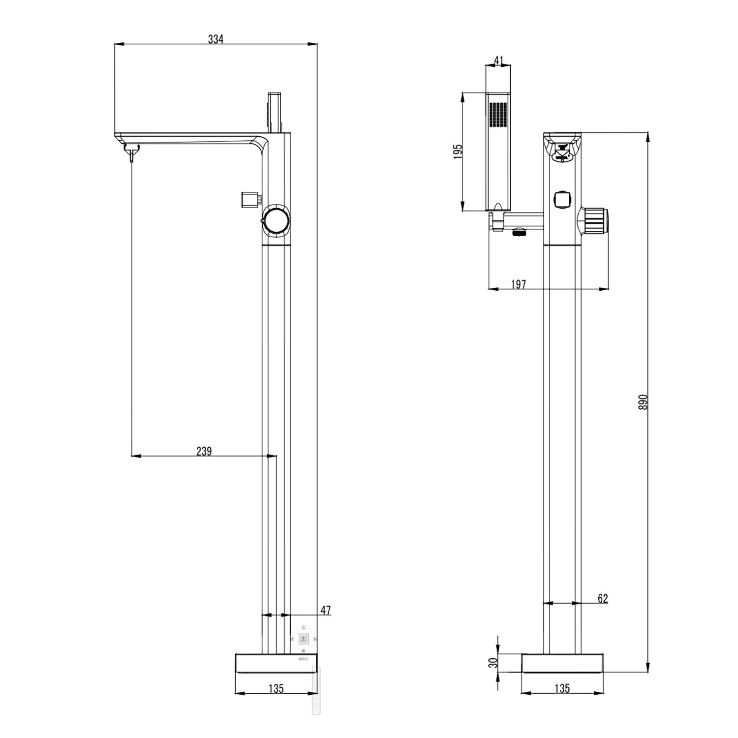 - Назначение для отдельно стоящей ванны