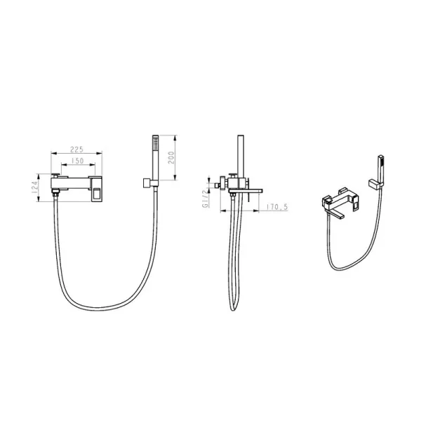 - Смеситель для ванны с душевым гарнитуром