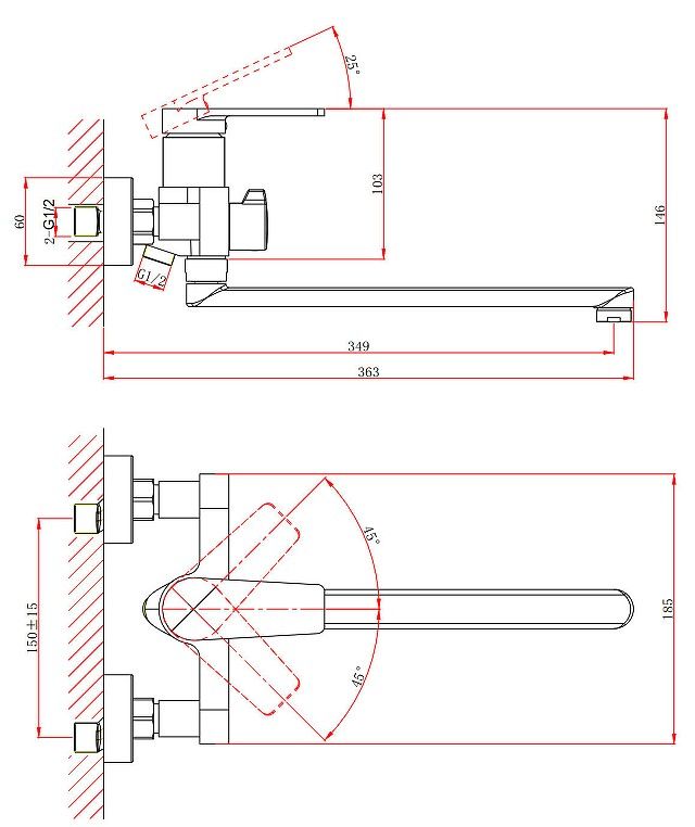 • Длина излива, см: